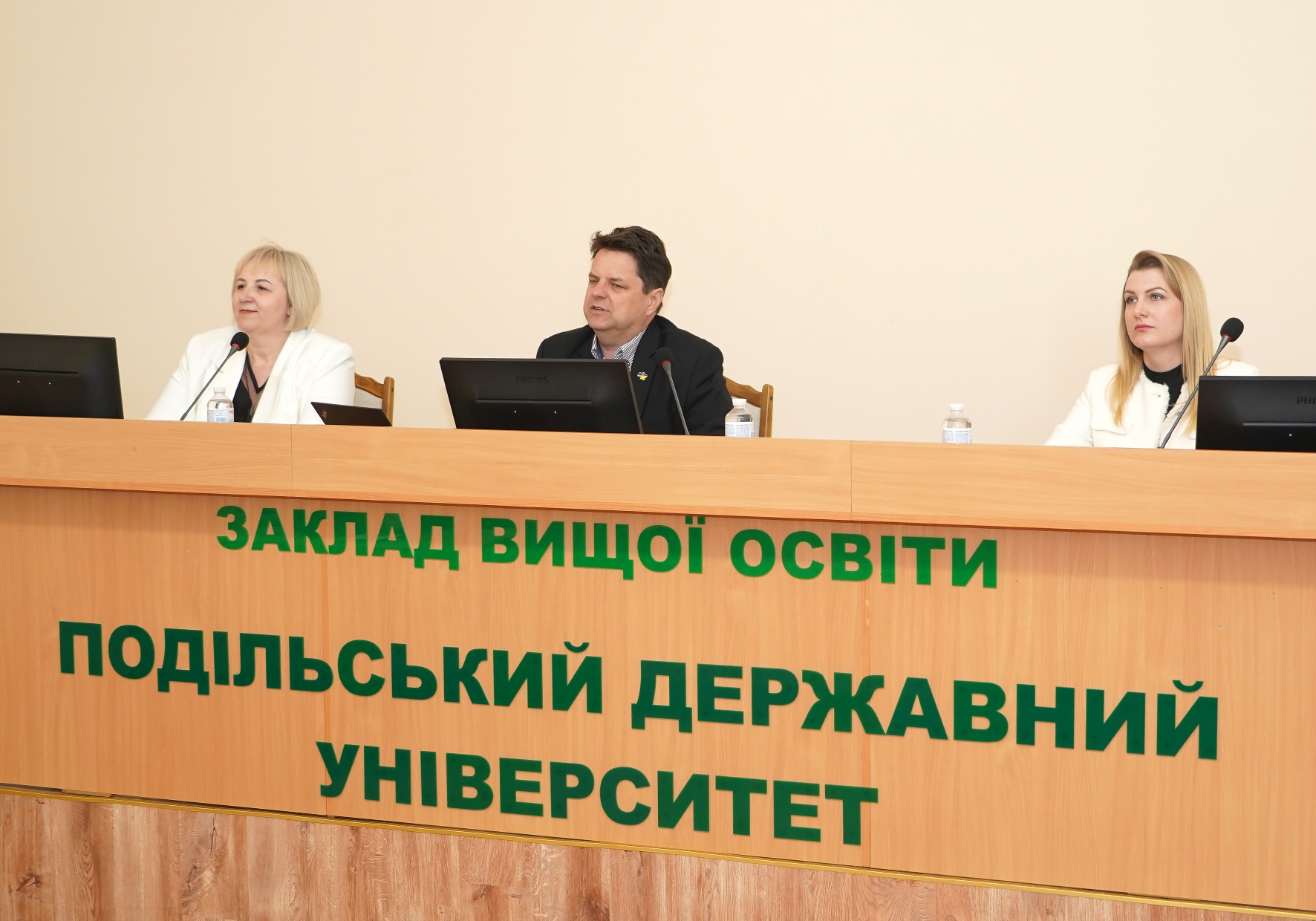 Робочий візит продовжився участю гостей в позачерговому засіданні вченої ради ЗВО «ПДУ», на якому заступник Міністра освіти і науки України Михайло ВИННИЦЬКИЙ повідомив про ініціативу Міністерства освіти і науки України про приєднання Кам’янець-Подільського національного університету імені Івана Огієнка до Закладу вищої освіти «Подільський державний університет» та пропозицію МОН України щодо назви обʼєднаного університету, який утвориться внаслідок реорганізації – Подільський державний університет імені Івана Огієнка.