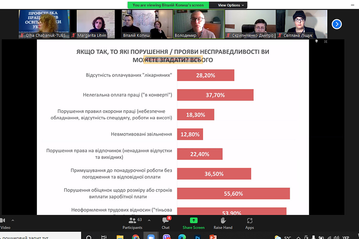 У листопаді 2021 року понад 2000 респондентів, зокрема і студенти, взяли участь у Всеукраїнському дослідженні щодо соціально-трудових відносин та дискримінації у сфері праці. В системі людської життєдіяльності праця синтезує не тільки економічні, але й соціальні функції, оскільки вона узагальнює достатньо складний спектр економічних і соціальних відносин. Серед завдань, що реалізуються цією категорією, — стан виробничо-технічних умов праці, матеріального і культурного рівня життя трудящих, підвищення їхнього загальноосвітнього і професійного рівня, територіальний і галузевий розподіл трудового потенціалу тощо. Структурні зрушення на ринку праці обумовлені трансформацією суспільних і економічних відносин в сучасному глобалізованому світі. Окреме місце в працевлаштуванні займають студенти, які працюють.