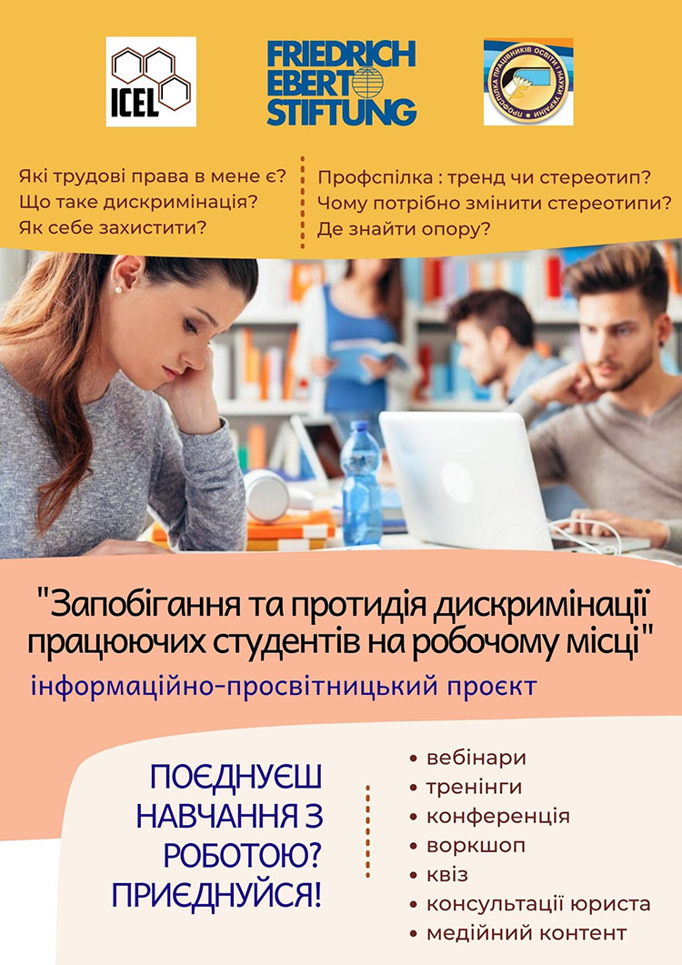 Профспілка разом із партнерами (ГО «Інститут громадської освіти та праці» за підтримки Представництва Фонду ім. Фрідріха Еберта в Україні) планує провести низку заходів, серед яких – регіональні вебінари та тренінги, воркшопи, квізи, консультації та всеукраїнська конференція. До участі в заходах проєкту запрошуватимуться студенти, які поєднують здобуття освіти з роботою, а також профспілкові лідери та активісти з усіх регіонів України.
