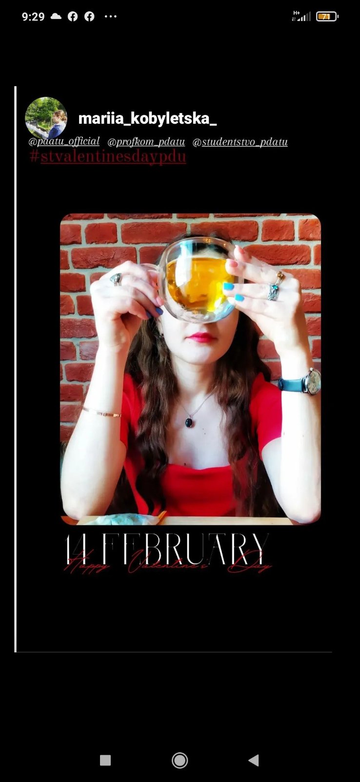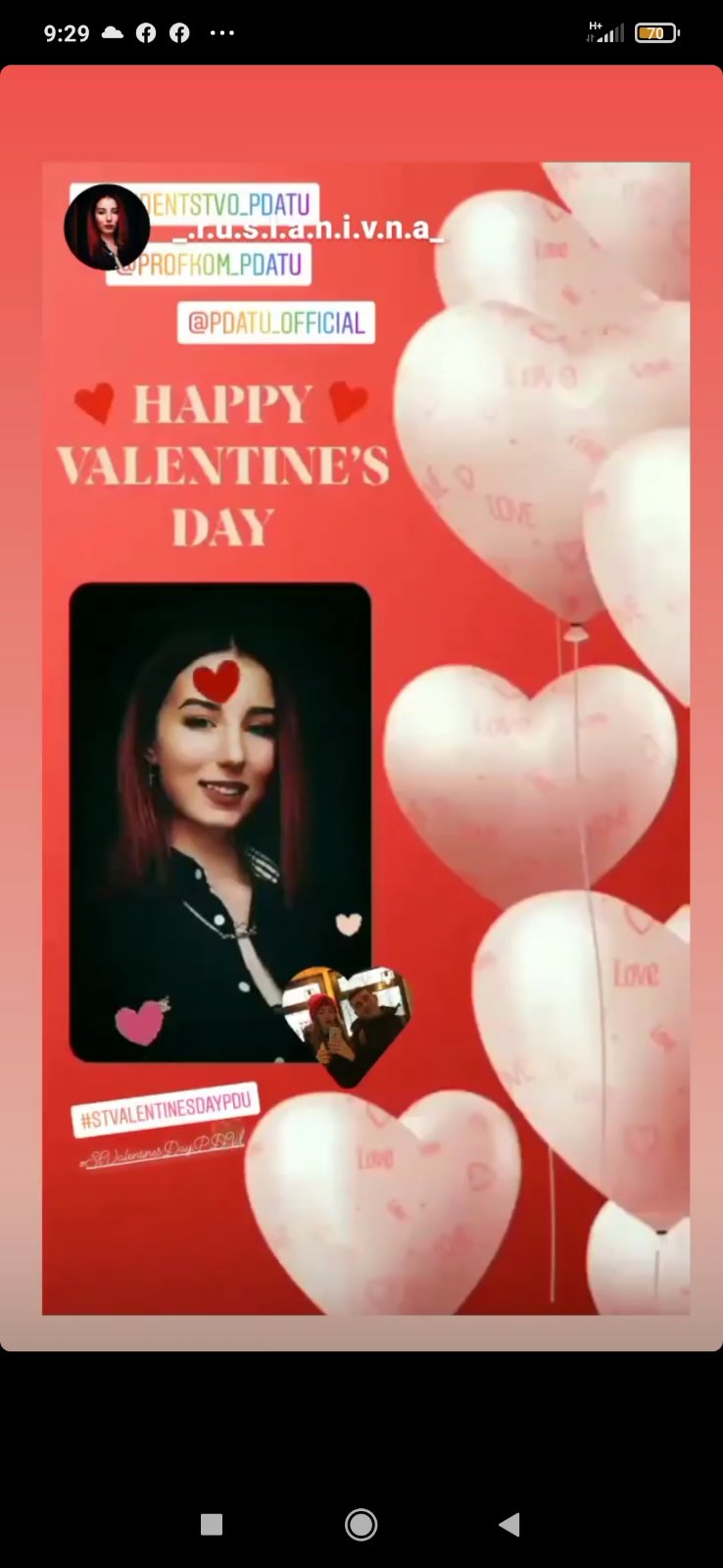 У США за традицією з Днем святого Валентина вітають не тільки тих друзів і подруг, з ким знаходяться у романтичних стосунках. У цей день вітають усіх, кого просто люблять — мам, татусів, дідусів, бабусь, друзів. Саме з такою метою вчора у закладі вищої освіти «Подільський державний університет» відбувся онлайн-флешмоб «VALENTINE'S VIRTUAL FLASHMOB»