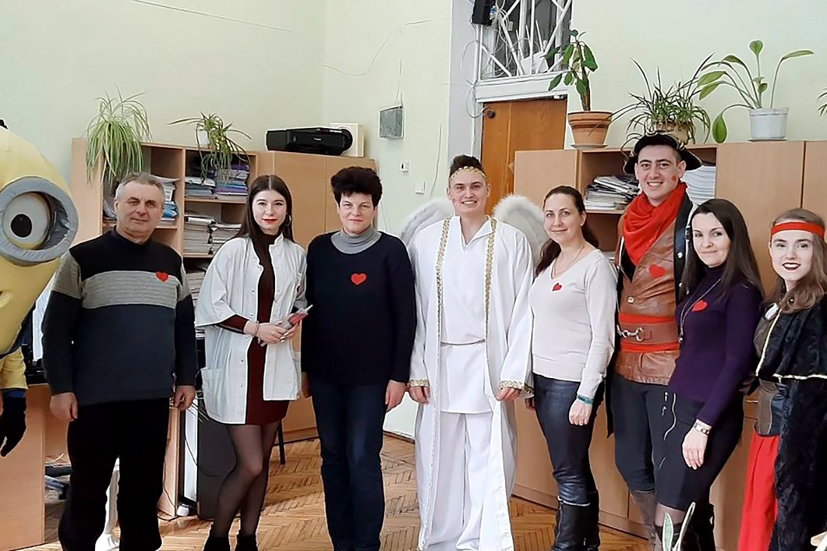 А вже 14 лютого святково та романтично був убраний навчальний заклад: у холі – надувні кульки у вигляді серця, де кожен мав змогу зробити безліч крутих селфі на згадку про яскраве свято, яскраві валентинки та цитати про кохання із творів поетів та письменників. Академічні групи підготували яскраві стінгазети, присвячені святу. Поряд знаходилася поштова скринька, у яку всі охочі опускають невід'ємний атрибут свята – валентинки. Студентський парламент влаштував святковий костюмований флешмоб «Від Валентина. З любов'ю» та дарував листівки і подаруночки оточуючим!