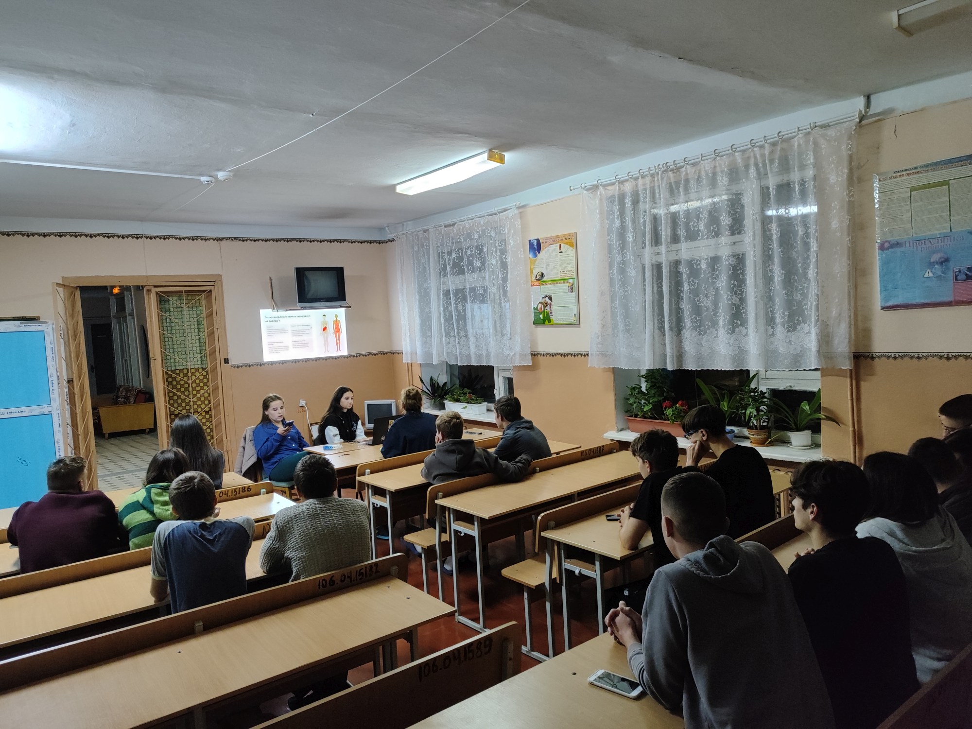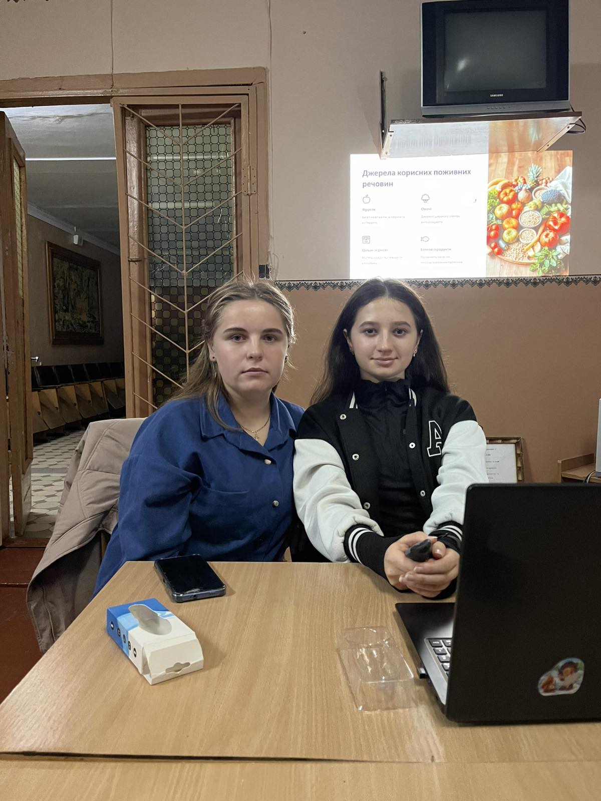 Спікери виховної бесіди Ірина МАЗОРЧУК (голова студентської ради ННІХТ) та Вікторія ЗАЛІЗНЯК (заступник з наукової роботи голови студентської ради ННІХТ) розповіли присутнім про основні недоліки у харчуванні студентів і як вони позначаються на працездатності та самопочутті, а у подальшому й відображаються на результатах навчання і житті молодої людини та у цілому формування особистості й кваліфікованого спеціаліста.