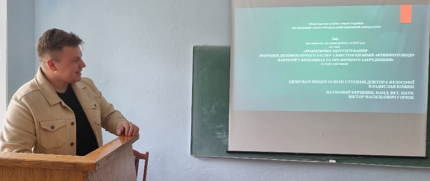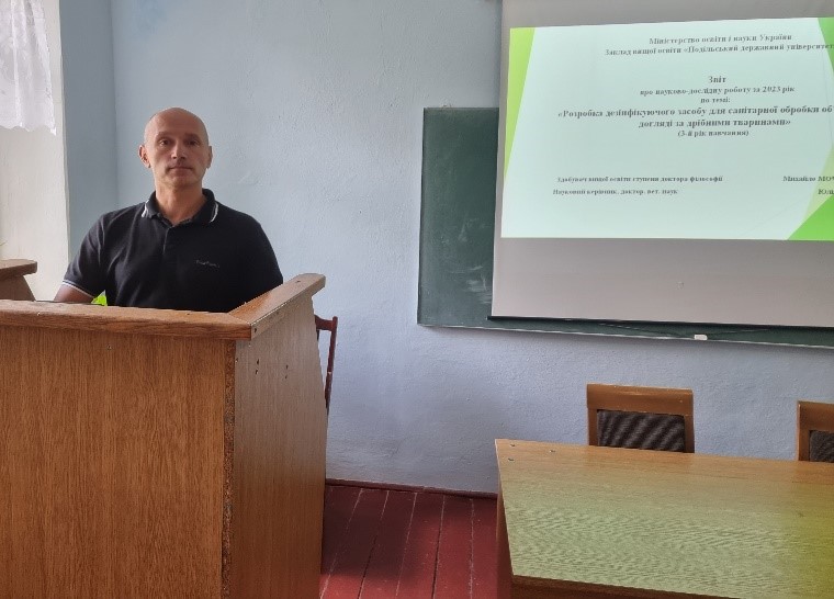 20 вересня 2023 року відбулася атестація аспірантів всіх років та форм навчання на розширеному міжкафедральному семінарі факультету ветеринарної медицини і технологій у тваринництві. Розпочала захід вступним словом проректор з навчальної, науково-інноваційної та міжнародної діяльності Оксана БЯЛКОВСЬКА та відмітила, що звітування про свою роботу для аспіранта - вагома нагода представити себе та завершити ще один із етапів роботи, а значить продовжувати і реалізовувати завдання щодо поставленої мети. У доповідях взяли участь: Василь БАНДУРА, аспірант 1 року навчання кафедри гігієни тварин та ветеринарного забезпечення кінологічної служби Національної поліції України, науковий керівник докторка с.г.наук, професорка Тетяна СУПРОВИЧ; Ігор ЛЕСЮК, аспірант 1 року навчання кафедри ветеринарного акушерства, внутрішньої патології та хірургії, науковий керівник к.біол.н. доцент Олександр БОДНАР; Андрій КРАВЧЕНКО, аспірант 2 року навчання кафедри інфекційних та інвазійних хвороб, науковий керівник докторка вет.наук, доцентка Вікторія ЛЕВИЦЬКА; СТРОЇЧ Василь аспірант 3 року навчання кафедри ветеринарного акушерства, внутрішньої патології та хірургії науковий керівник к.вет.н., доцент ГОРЮК Віктор; Михайло МОЧЕРНЮК, аспірант 3 року навчання кафедри ветеринарного акушерства, внутрішньої патології та хірургії, науковий керівник докторка вет.наук, доцентка Юлія ГОРЮК; Лілія СТРОЯНОВСЬКА, аспірантка 3 року навчання кафедри гігієни тварин та ветеринарного забезпечення кінологічної служби Національної поліції України, науковий керівник докторка с.г.наук, професорка Тетяна СУПРОВИЧ; Владислав КОЖИН, аспірант 4 року навчання кафедри ветеринарного акушерства, внутрішньої патології та хірургії, науковий керівник к.вет.н., доцент ГОРЮК Віктор. Окрім представлених звітів, дискусія під час зібрання велася у формі діалогу. Молоді науковці обмінювалися досвідом та спілкувалися з науковими керівниками.