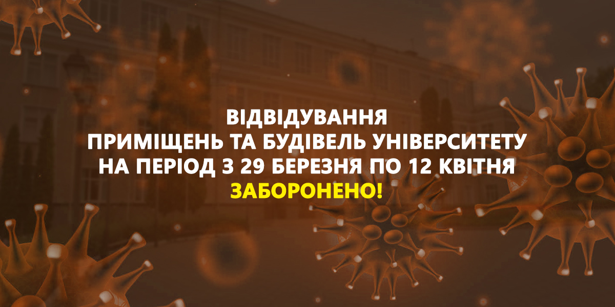 Увага! Відвідування приміщень та будівель університету на період з 29 березня по 12 квітня заборонено!