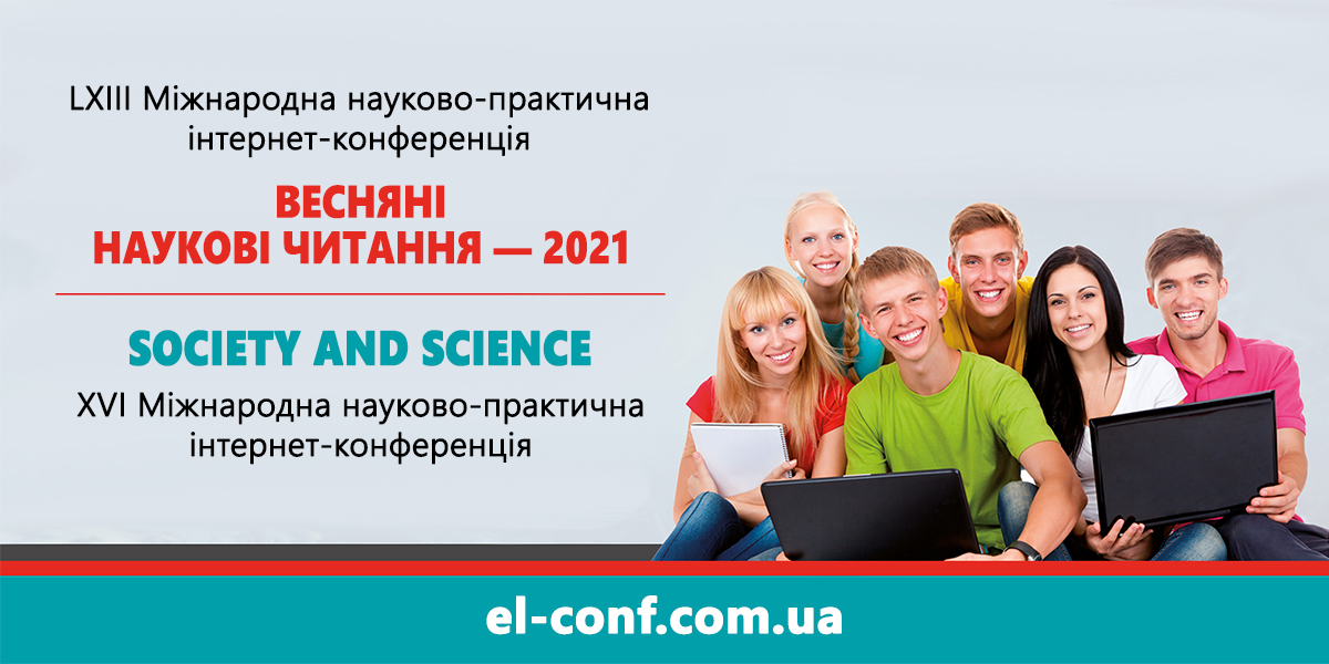 Запрошуємо прийняти участь у LXIІІ Міжнародній науково-практичній інтернет-конференції «ВЕСНЯНІ НАУКОВІ ЧИТАННЯ — 2021» та ХVІ Міжнародній науково-практичній інтернет-конференції «SOCIETY AND SCIENCE»