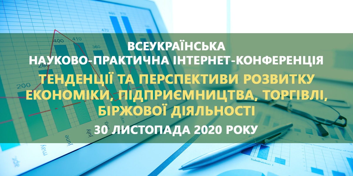 Запрошуємо до участі у Всеукраїнській науково-практичній Інтернет-конференції «Тенденції та перспективи розвитку економіки, підприємництва, торгівлі, біржової діяльності» 30 листопада 2020 року