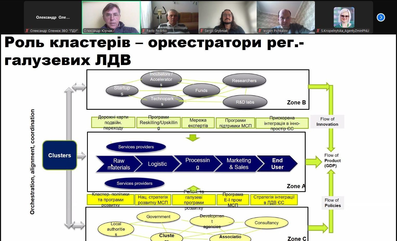 12 травня викладачі Подільського державного університету взяли участь в онлайн мітапі «Співпраця науки та бізнесу в кластерах – як покращувати», організованому Українським кластерним альянсом та українською спільнотою організації інженерів з електротехніки, радіоелектроніки та електроніки. Головною темою зустрічі стало обговорення викликів розвитку кластерних ініціатив в Україні з огляду на європейський досвід, де університети, наукові установи та бізнес об’єднані в успішні інноваційні екосистеми, які генерують до восьмидесяти відсотків усіх патентів Європейського Союзу.