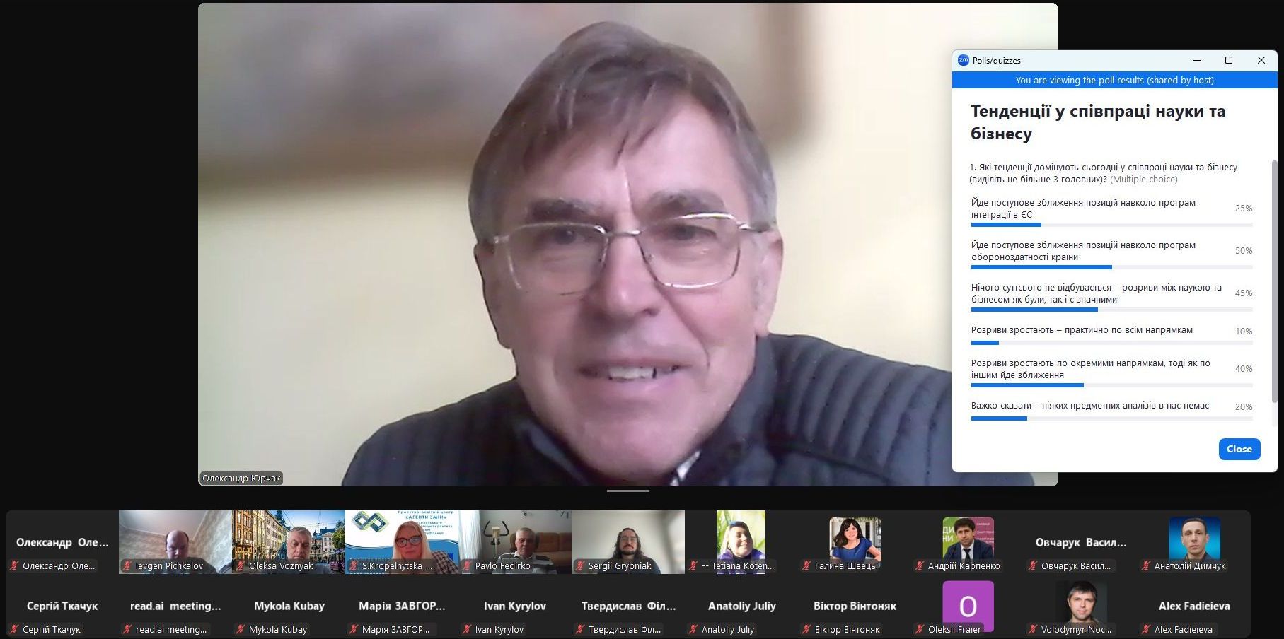 У центрі уваги зустрічі була тема поглиблення співпраці з урахуванням особливостей вітчизняного наукового середовища. Модератори та доповідачі акцентували увагу на необхідності налагодження ефективних каналів комунікації між науковцями та бізнесом, враховуючи сучасні виклики й можливості, що відкриваються в Україні.