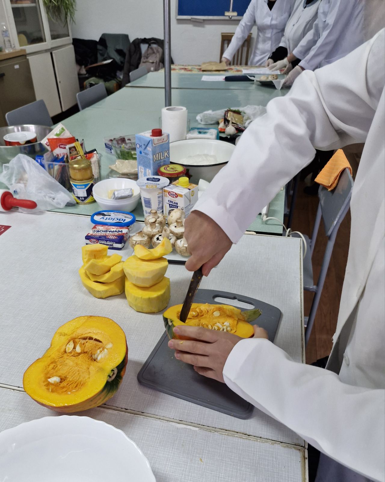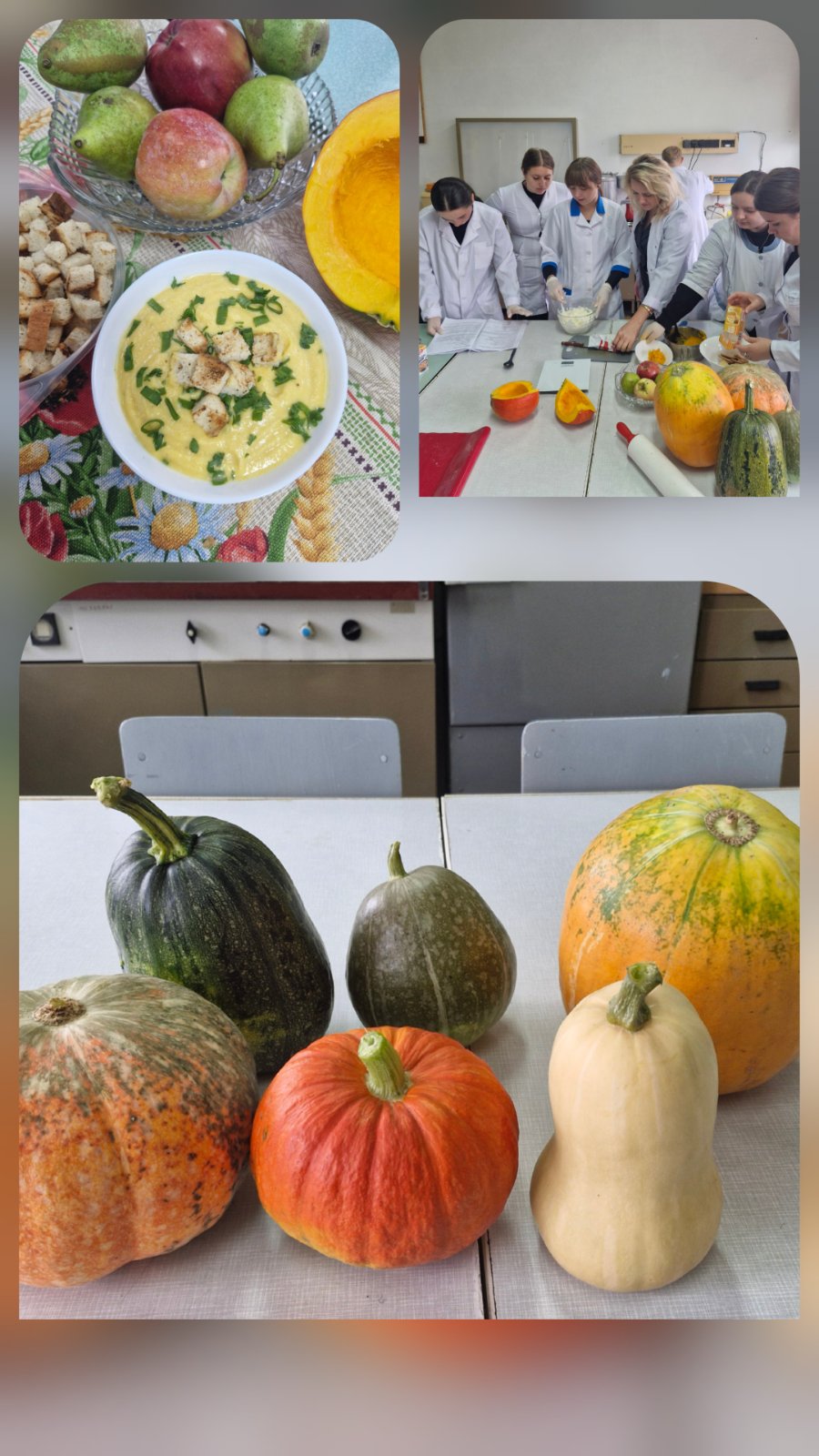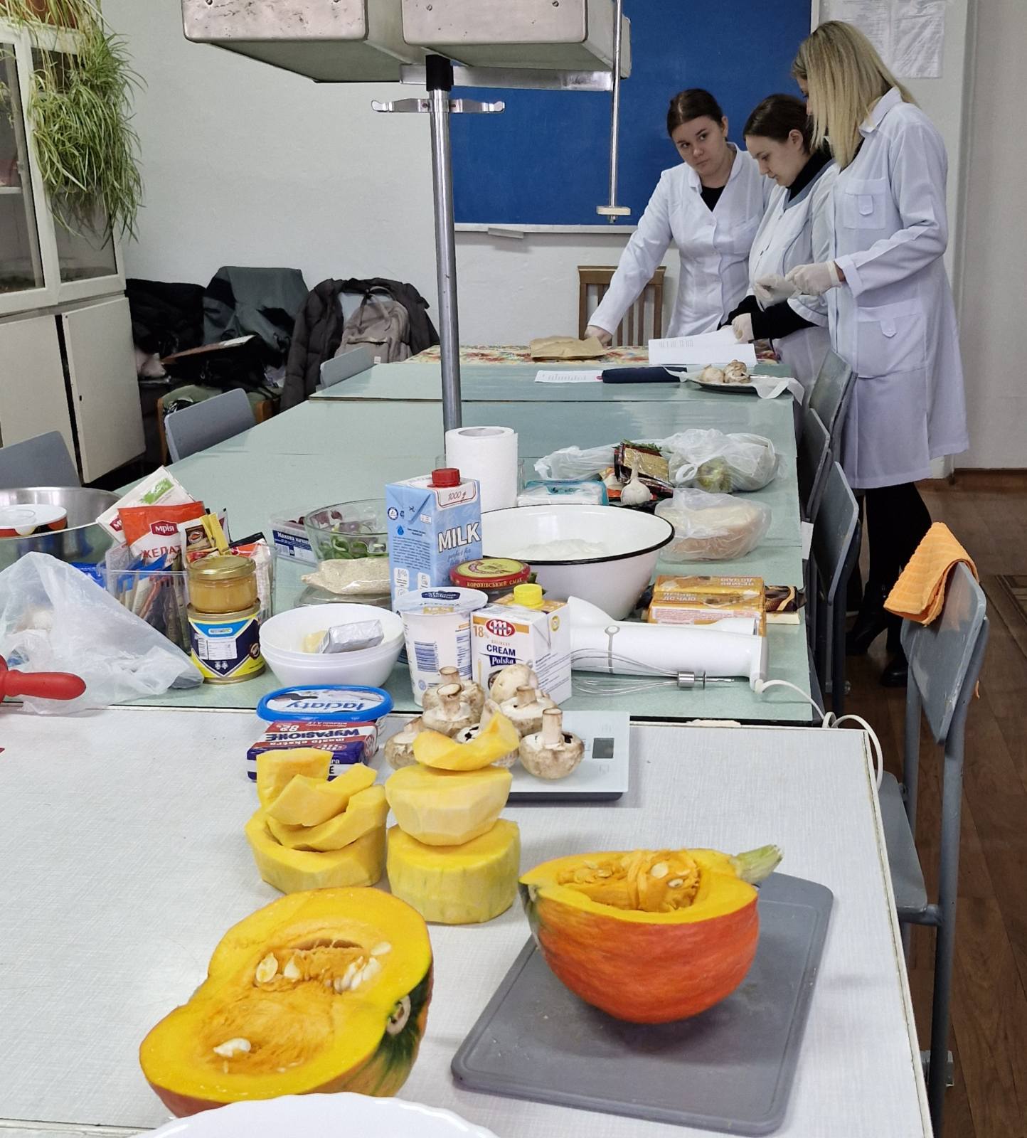 Під час роботи здобувачі мали можливість не лише поглибити свої знання з теорії, але й закріпити їх на практиці. Було проведено дегустацію зразків гарбузового пюре із різними способами термічної обробки, щоб оцінити, як саме змінюються колір, аромат, смак і текстура пюре під дією різних температур. Кожен спробував приготувати крем-суп за своїм власним рецептом, продегустувати і оцінити органолептичні показники. Особливу увагу гуртківці приділили процесам запікання, варіння, карамелізації, адже саме вони відповідають за формування характерних органолептичних показників — притаманного кольору пюре, приємного запаху й багатого смаку. Учасники переконалися, що не лише досліджують та аналізують різні процеси, а ще покращують смак страв, додаючи прянощі, мед, горіхи, тощо.