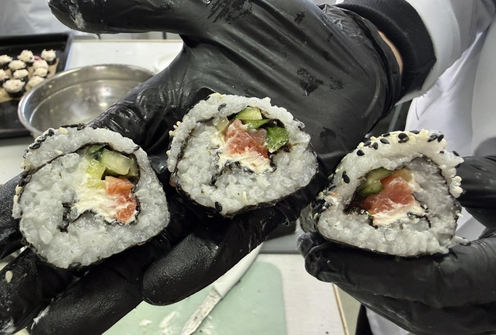 Так, здобувачі навчились готувати рис спеціальних сортів із підвищеним вмістом клейковини різними способами. Важливим компонентом до рису є заправка з рисового оцту, цукру і солі, приготована за спеціальною рецептурою. Також під час майстер-класу здобувачі вивчили процес підготовки і нарізання риби, морепродуктів (лосось, креветки); нарізання овочів (огірок, авокадо); формування ролів; подачі додаткових компонентів (соєвого соусу, маринованого імбиру). На початку робочого процесу здобувачі провели органолептичну оцінку усіх продуктів. Це не лише навчає згуртованій системній роботі, а й створює дружню атмосферу, наповнену задоволенням від спільного результату. Вивчення мистецтва приготування суші — це не просто майстер-клас, а й маленьке зростання кожного здобувача як фахівця. Творчий підхід та експерименти у роботі дозволяють проявити фантазію та індивідуальність кожного учасника.