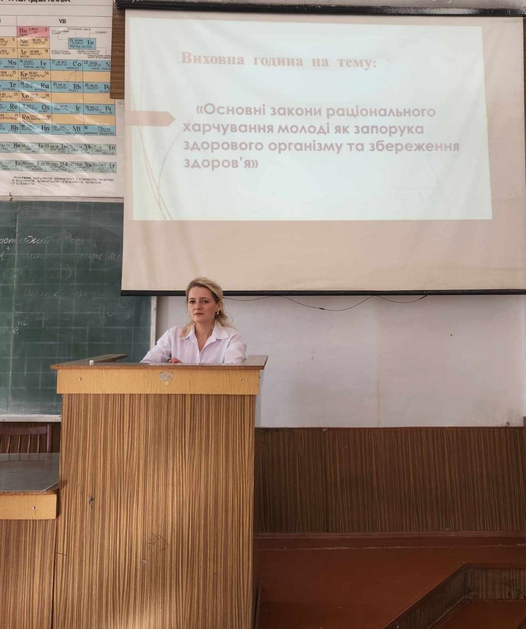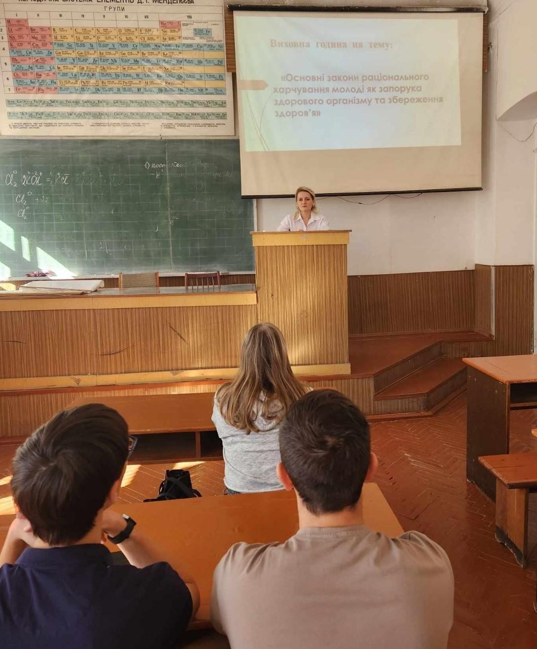 Питання на виховній годині були присвячені значенню раціонального харчування для здоров’я молодої людини та нутрієнтів для життєдіяльності в цілому.