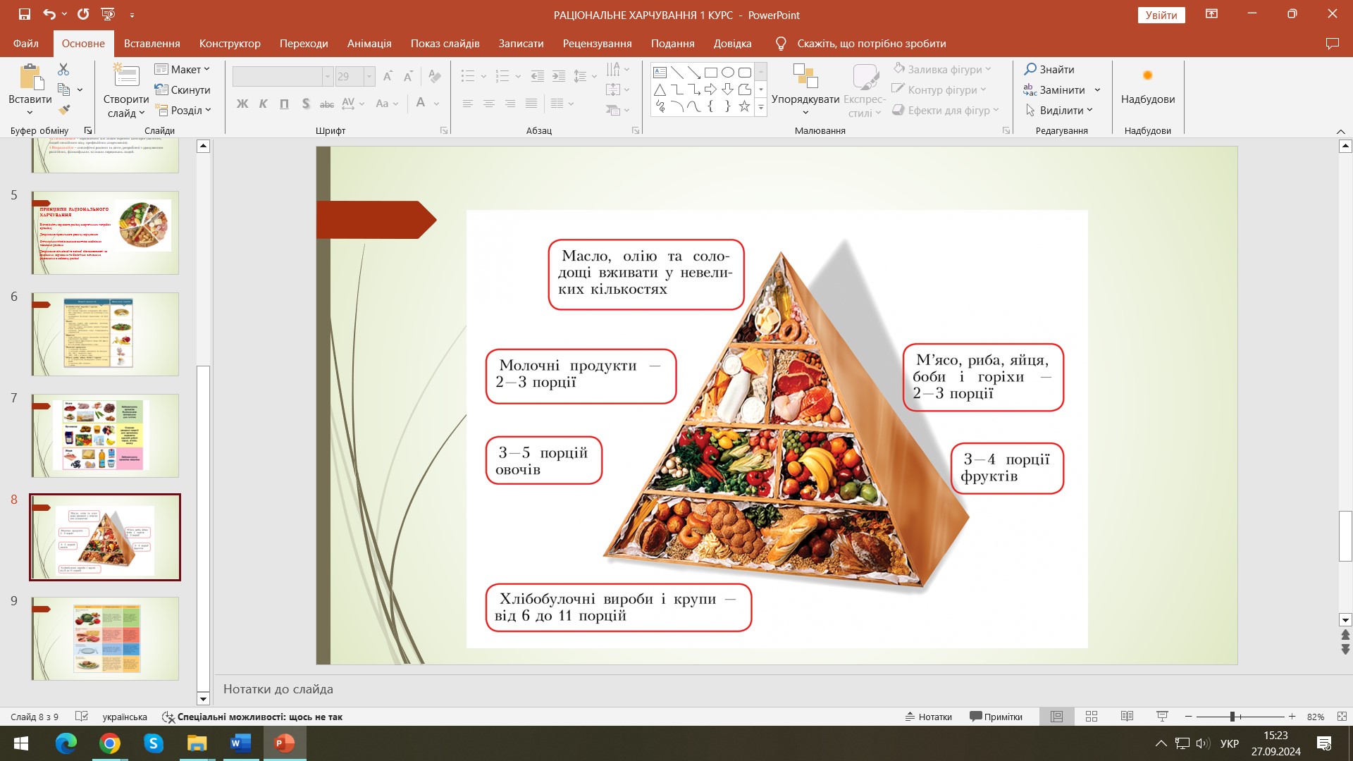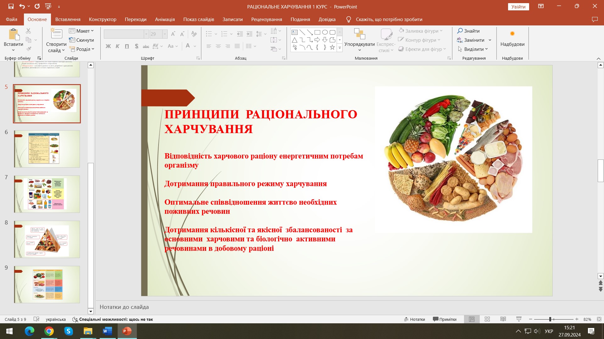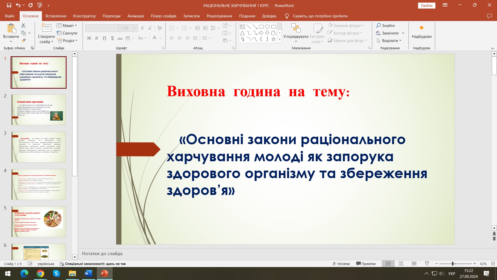 27 вересня асистентом кафедри харчових технологій виробництва й стандартизації харчової продукції Лілією ТКАЧ було проведено виховну годину на тему: «Основні закони раціонального харчування молоді як запорука здорового організму та збереження здоров’я» для здобувачів 1 курсу спеціальності 181 Харчові технології.