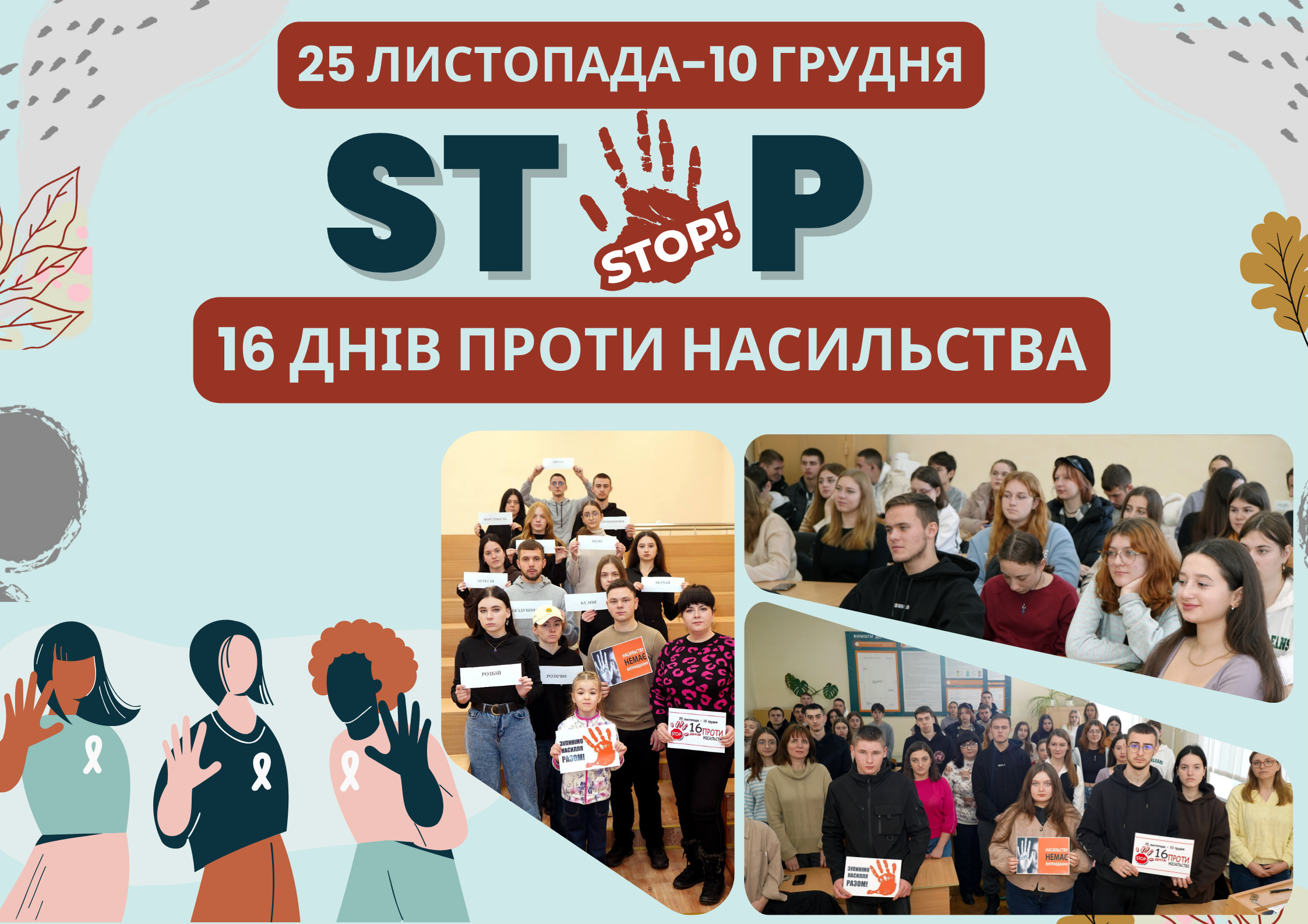 Щорічно в Україні з 25 листопада до 10 грудня включно проводиться Всеукраїнська акція «16 днів проти насильства». Мета акції – привернення уваги суспільства до проблем подолання насильства у сім’ї, жорстокого поводження з дітьми, протидії торгівлі людьми та захисту прав жінок.
