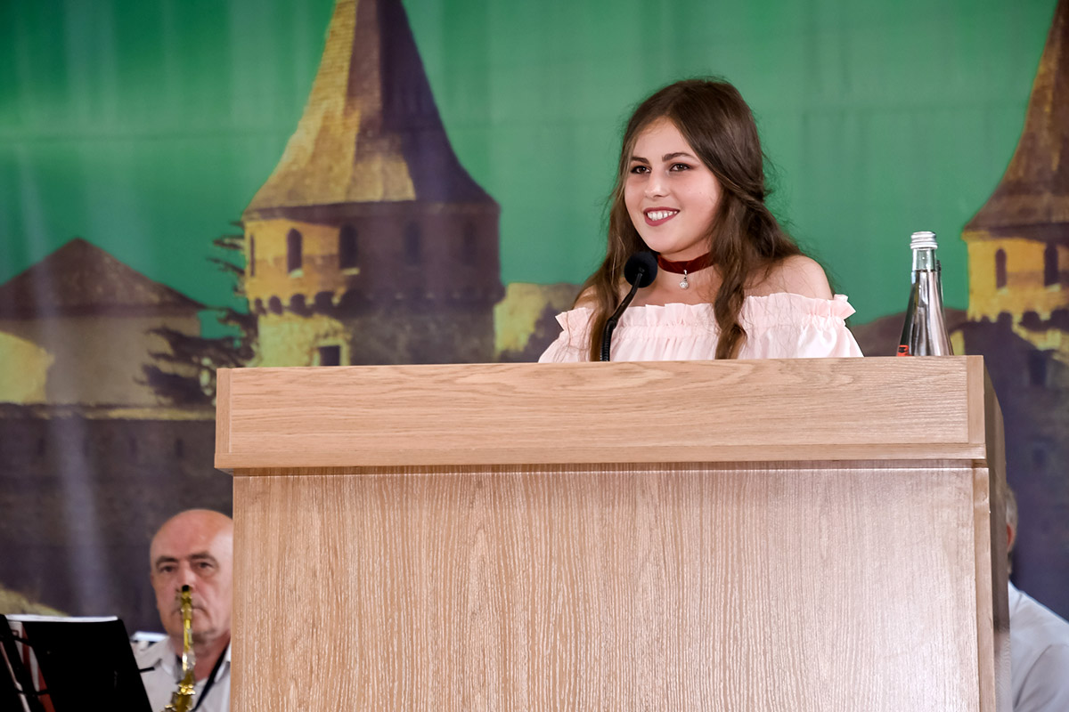Від імені всіх випускників 2021 року слова вдячності університету, науково-педагогічним працівникам, усім працівникам закладу висловила випускниця факультету агротехнологій та природокористування Єлизавета Добжанська.