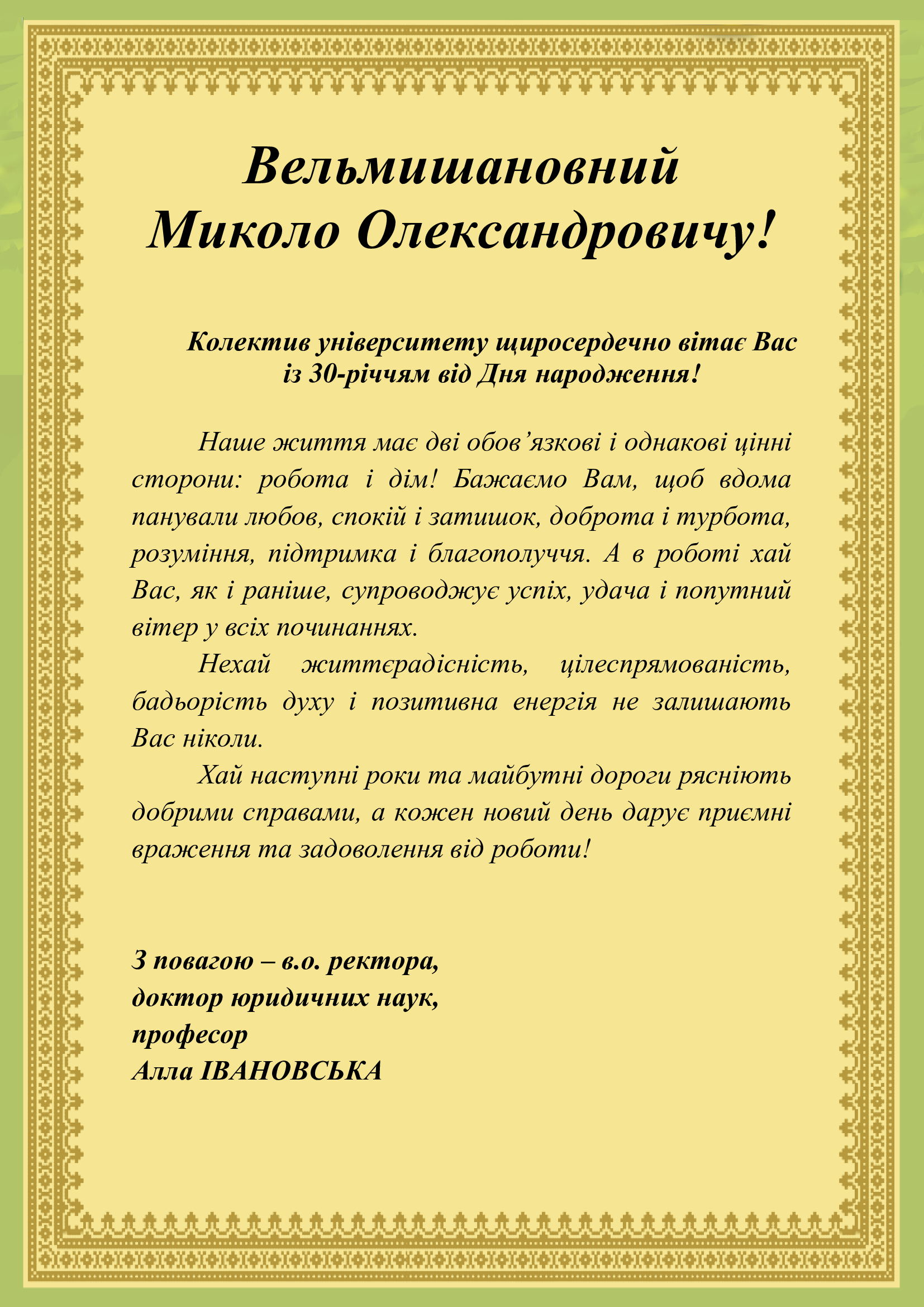 Вітаємо Миколу Олександровича!